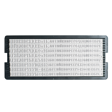 Касса из высококачественной резины с оптимальным набором букв, цифр и знаков.